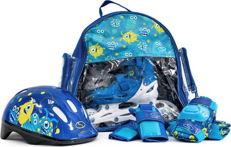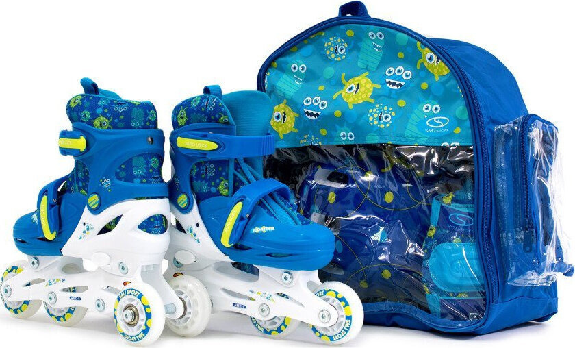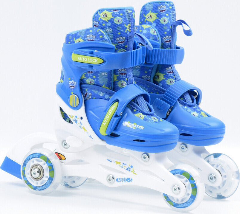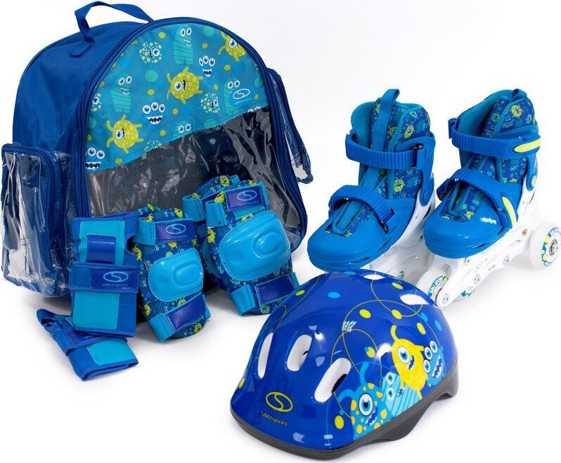Zestaw wrotki rolki 2w1 wrotko-rolki kask ochraniacze plecak świecące koła LED Monster