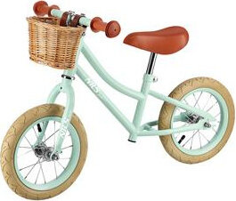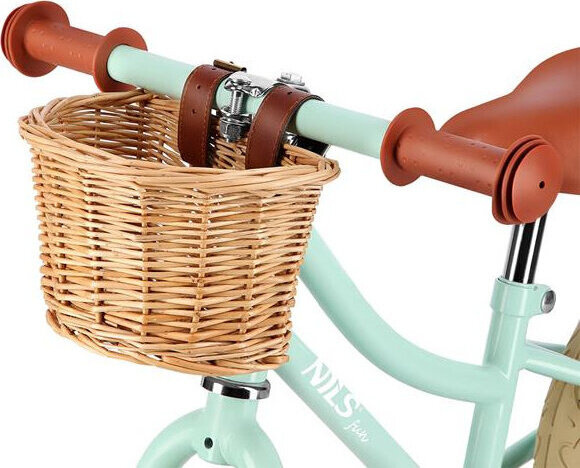 Rowerek biegowy RB031 posiada również praktyczne rozwiązanie w postaci wiklinowego koszyczka przymocowanego do kierownicy, w którym schowamy ulubioną zabawkę lub napój.