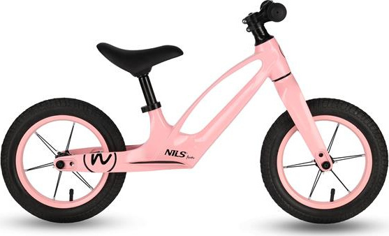 Rowerek biegowy dziecięcy Nils Fun RB901 pompowane koła led 12'' różowy 90x50x41cm