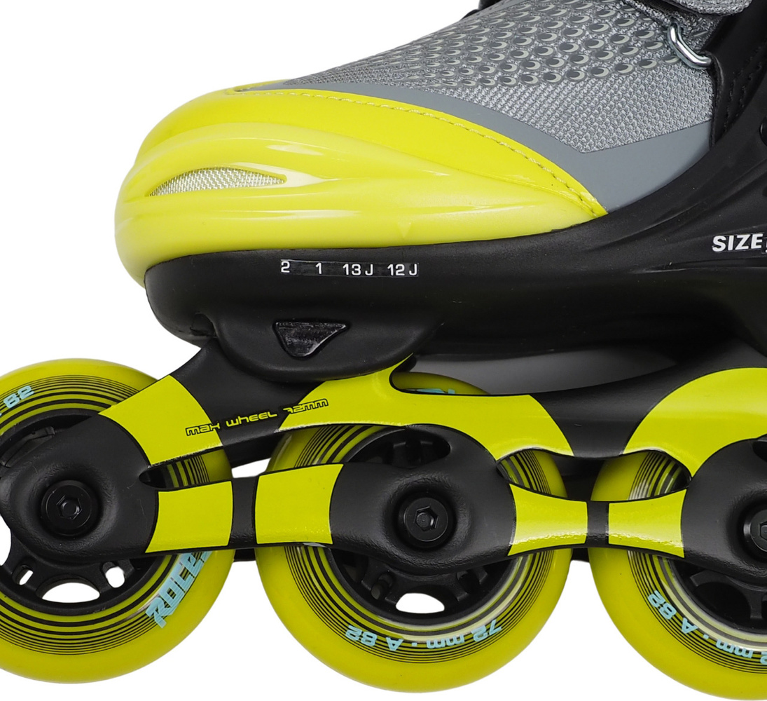 Kolorystyka dopełniona odblaskowymi detalami poprawi widoczność Twojego dziecka w trakcie aktywności. Wytrzymała konstrukcja buta i ramy oferuje możliwość regulacji rozmiaru, dlatego rolki będą wiernym towarzyszem dziecka przez kilka sezonów.