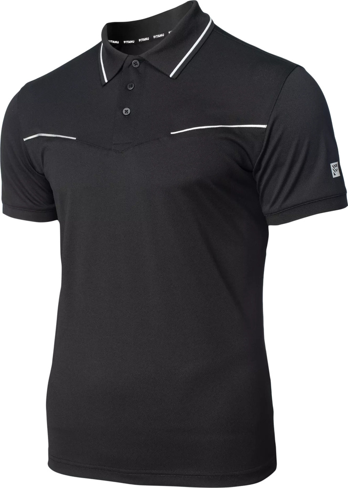 Męska czarna koszulka polo honan marki fitanu została uszyta z wysokiej jakości materiałów syntetycznych pochodzących z recyclingu.