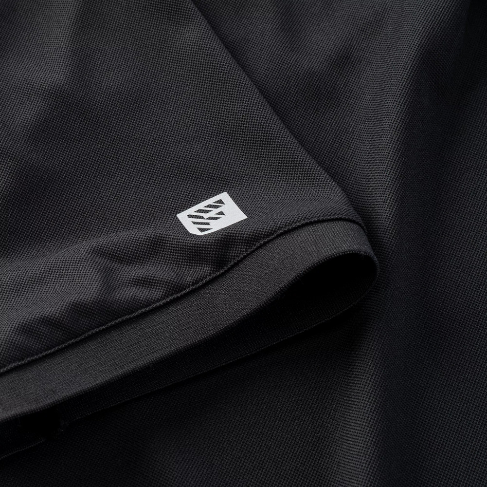 Męska czarna koszulka polo honan marki fitanu została uszyta z wysokiej jakości materiałów syntetycznych pochodzących z recyclingu.