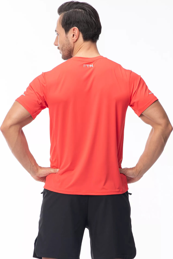 Męska koszulka do biegania fello marki fitanu została uszyta z wysokiej jakości materiałów syntetycznych sprawnie odprowadzających wilgoć oraz szybkoschnących.
