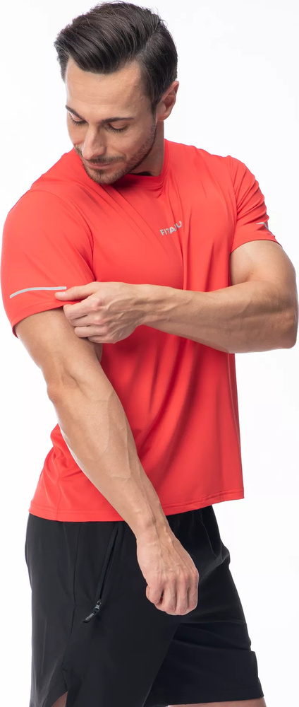 Męska koszulka do biegania fello marki fitanu została uszyta z wysokiej jakości materiałów syntetycznych sprawnie odprowadzających wilgoć oraz szybkoschnących.