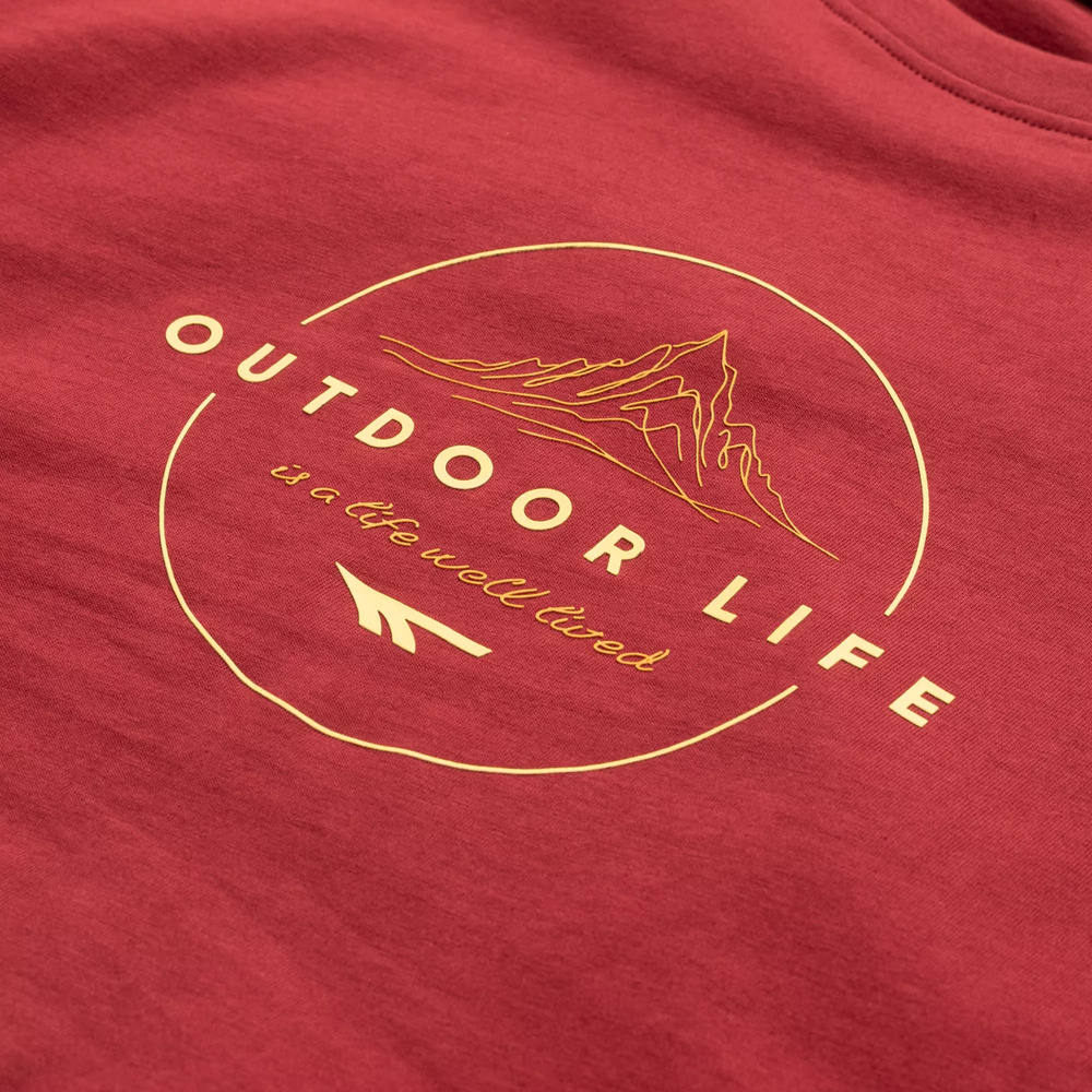 Na jednolitym tle umieszczono grafikę nawiązującą do górskiej pasji.