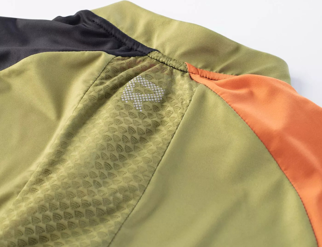 Elementy odblaskowe oraz mocna kolorystyka zwiększają bezpieczeństwo rowerzysty w warunkach słabej widoczności.