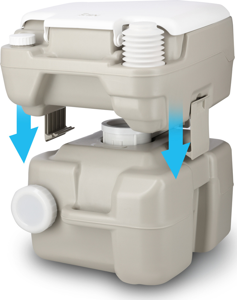 Model NC0025 składa się z dwóch oddzielnych zbiorników: na czystą wodę (10 litrów) oraz na nieczystości (20 litrów).