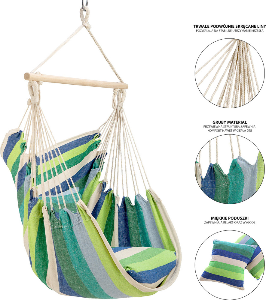 Tego typu krzesła, nieznacznie przypominają hamak, jednak są dużo prostsze w montażu.