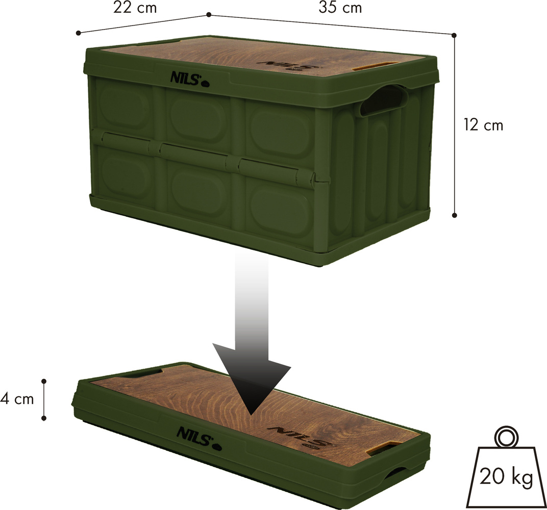 NCB4007 SKŁADANA SKRZYNIA KEMPINGOWA ZIELONA Z FUNKCJĄ STOŁU 2W NILS CAMP