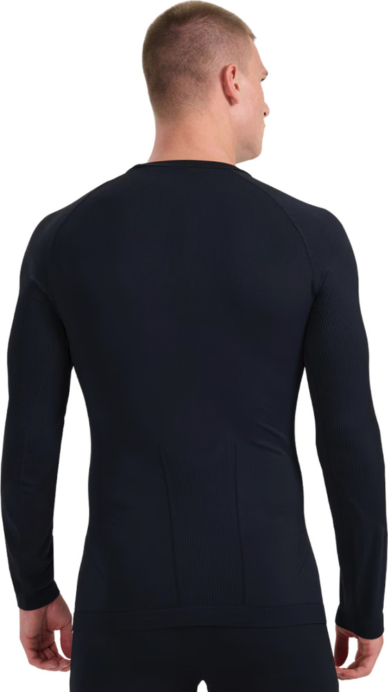 Górna część bielizny bezszwowej oferuje wysokie właściwości termoizolacyjne i komfort cieplny zarówno podczas długich godzin spędzonych na stoku, jak i ulubionych codziennych aktywności w zimne dni. Dopasowany krój slim o standardowej długości sięgającej do linii bioder przylega do ciała.