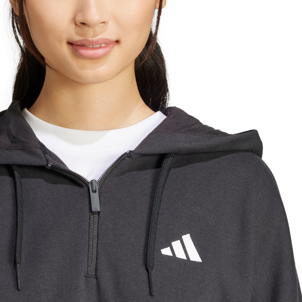 Bluza damska adidas Essentials 3-Stripes French Terry Quarter-Zip Hoodie czarna JN1956