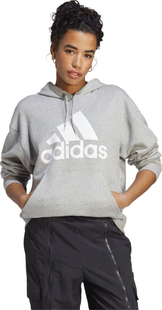 Bluza damska adidas Essentials Big Logo Oversized French Terry Hoodie szara IC9865