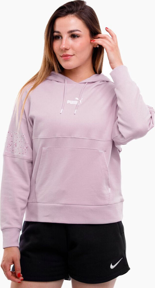 Fioletowa bluza damska Puma uzupełniona logo na rękawach oraz froncie ożywi każdą ponurą stylizację.
