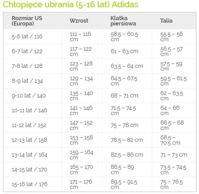 Tabela rozmiarów: