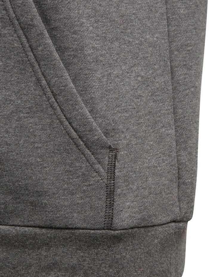 Juniorska, piłkarska bluza z kapturem Core 18 Hoody. Model wyposażony w raglanowe rękawy, kaptur ze sznurkiem do regulacji, ściągacze u dołu oraz przy mankietach oraz kieszeń typu kangur ogrzeje ręce. Duża zawartość bawełny daje swobodę ruchów oraz odpowiednią oddychalność.