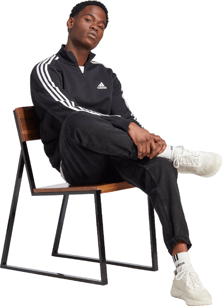 Bluza męska adidas Essentials Fleece 3-Stripes 1/4-Zip czarna HZ6235