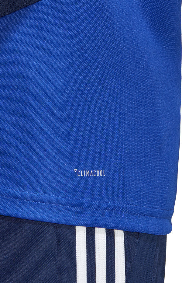 Wyprodukowana została z dzianiny z technologią Climacool, która wpływa na prawidłowe odprowadzanie ciepła i potu z powierzchni skóry. Niebieska bluza sportowa o dopasowanym kroju z półgolfem.