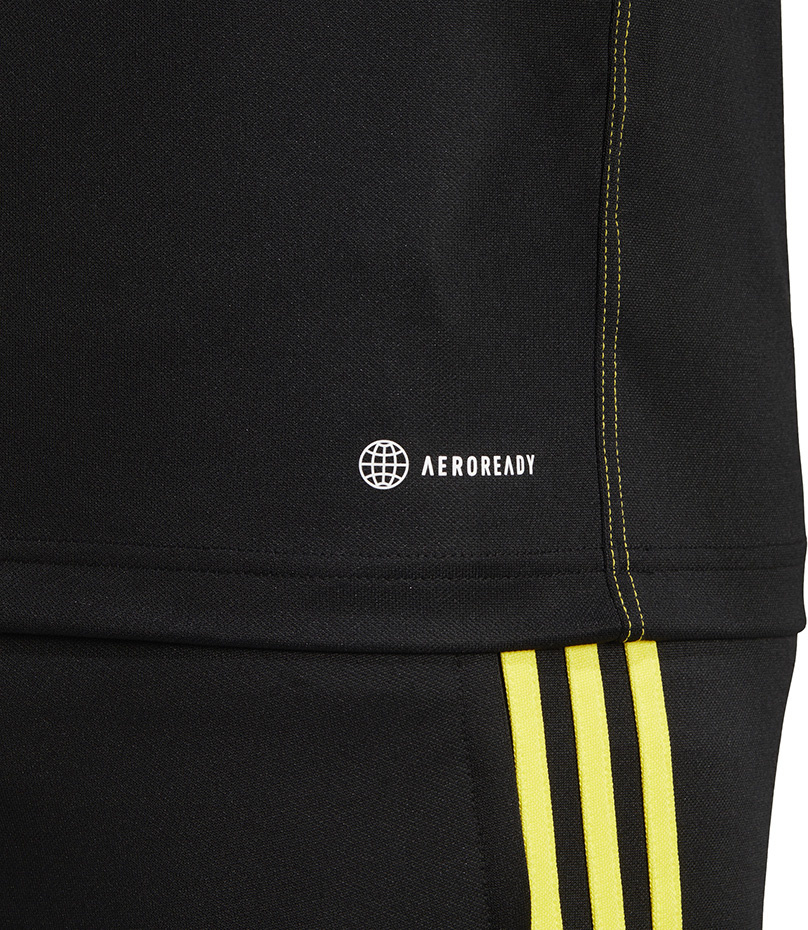 Dopasowany krój podkreśla atuty wysportowanej sylwetki, ale nie krępuje naturalnego zakresu ruchów. Żółte paski na ramionach oraz subtelne logo wyróżniają się na czarnym tle i podkreślają klasyczny, piłkarski styl bluzy adidas.