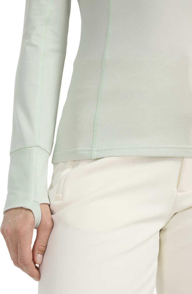 Wnętrze podszyto delikatnym, czesanym materiałem, który pozwala utrzymać temperaturę ciała na stałym poziomie. Otwory na kciuki utrzymują rękawy na miejscu i pomagają osłaniać dłonie, by nie marzły w trakcie plenerowego treningu.