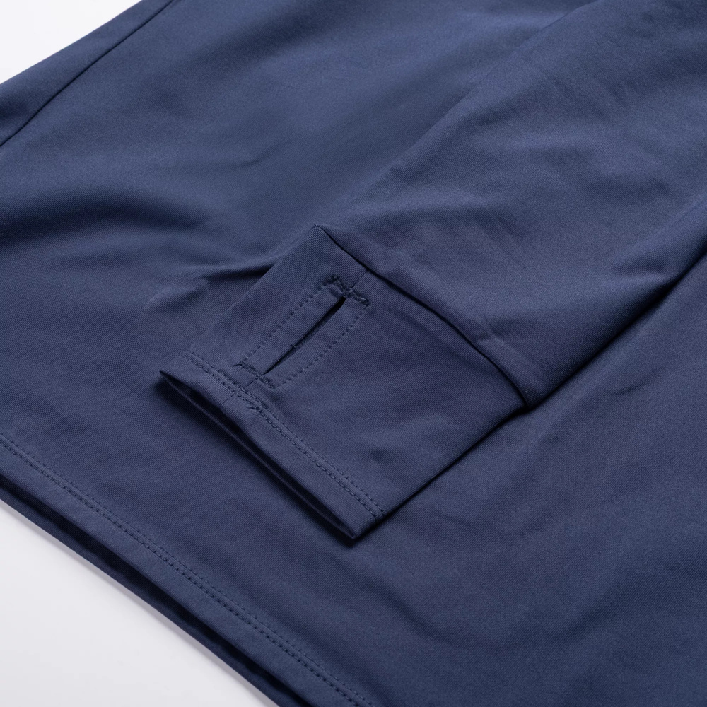 Umieszczone w mankietach rękawów otwory na kciuk utrzymują je na swoim miejscu.