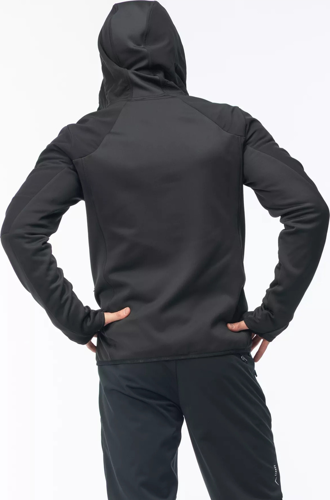 Elastyczne wykończenie mankietów z otworem na kciuk utrzymuje rękawy na swoim miejscu.