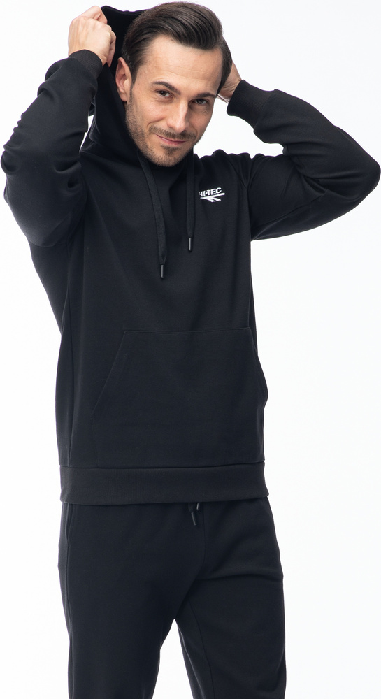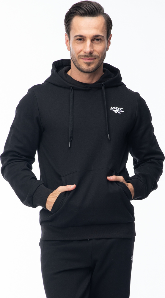 Męska czarna bluza z kapturem hinna marki hi-tec posiada wygodny, nie krępujący ruchów krój.