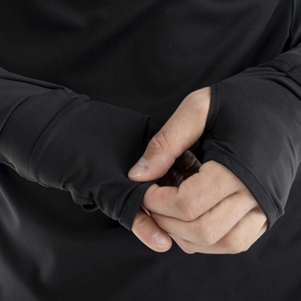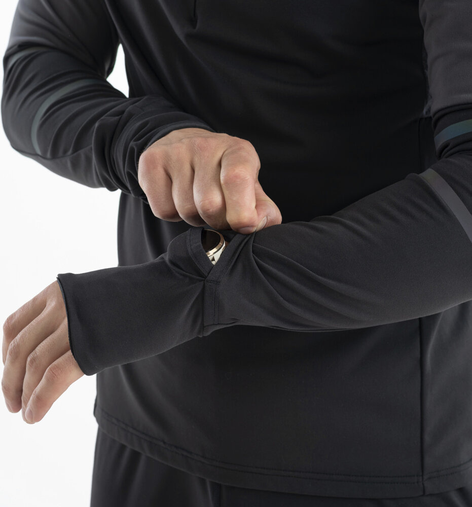 Mankiety posiadają otwory na kciuki, dzięki czemu rękawy pozostają na swoim miejscu.