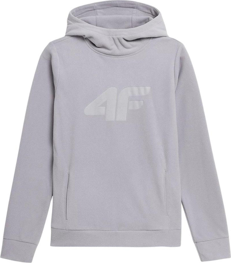Szary model z dużym logo brandu tworzy uniwersalny fason, który z powodzeniem może tworzyć wierzchnią warstwę lub być uzupełnieniem kurtki w wyjątkowo chłodne dni.