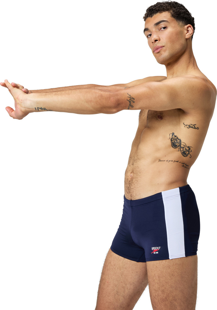Prosty design w stylu color-block, inspirowany archiwalnymi projektami speedo, nadaje elegancki, sportowy charakter.