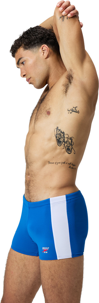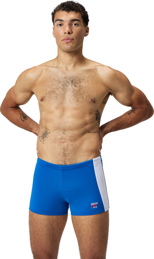 Prosty design w stylu color-block, inspirowany archiwalnymi projektami speedo, nadaje elegancki, sportowy charakter.