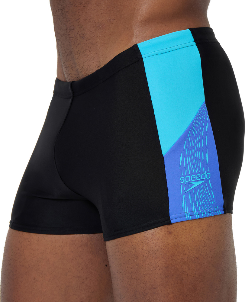 Klasyk speedo w wygodnym wydaniu, z kolorowymi dwukolorowymi panelami bocznymi i regulowanym sznurkiem w pasie dla łatwego dopasowania.