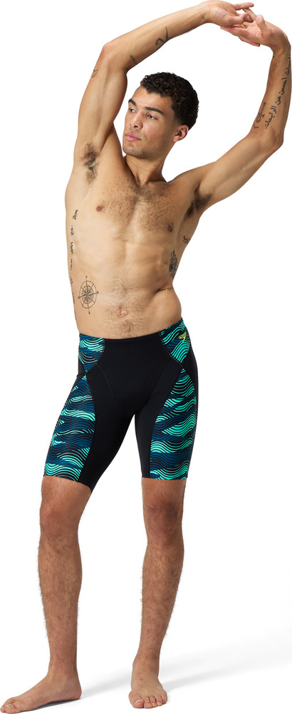 • endurance+ max: włókna poliestrowe i pbt wykonane w 100% z odpadów konsumenckich, takich jak plastikowe butelki, z wysoką odpornością na chlor• płaski sznurek: umieszczony w dedykowanym kanale pasa dla dodatkowej pewności i indywidualnego dopasowania• elastyczny pas: pas z silikonowym uchwytem, zaprojektowany, by zapewnić wygodne i pewne dopasowanie
