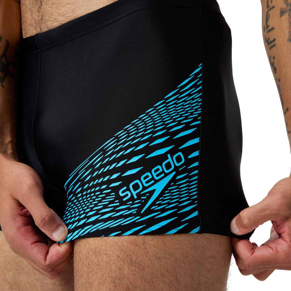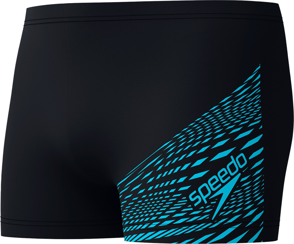 Sportowe kąpielówki o minimalistycznym designie z nadrukiem inspirowanym falami, zapewniające opływowy wygląd.
