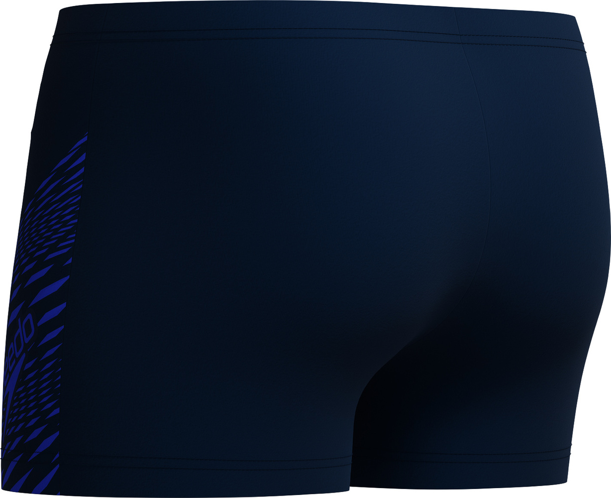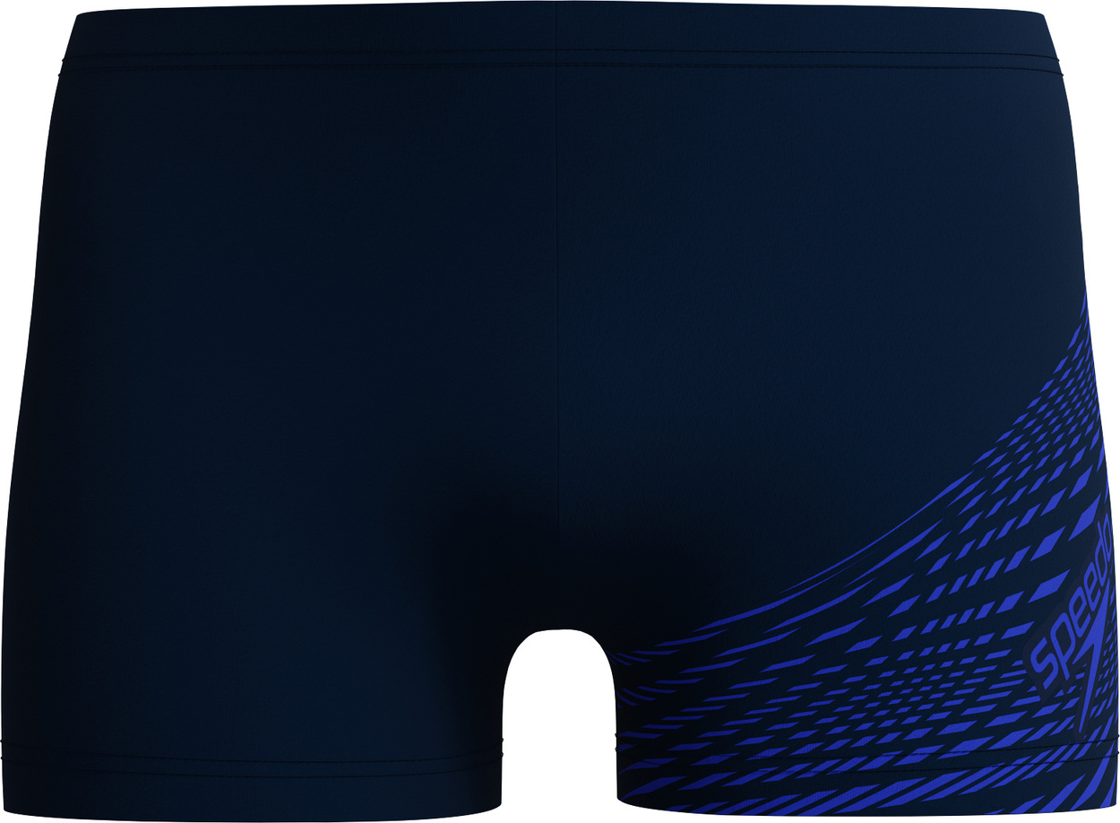 Sportowe kąpielówki o minimalistycznym designie z nadrukiem inspirowanym falami, zapewniające opływowy wygląd.