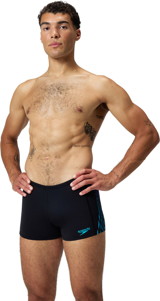 Kąpielówki tech aquashort zapewniają komfort i idealne dopasowanie podczas intensywnego pływania, a wewnętrzny sznurek w talii gwarantuje pewne dopasowanie.