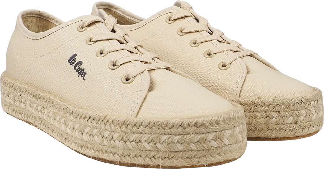 Buty damskie buty Lee Cooper z podeszwą wykończoną plecionym, parcianym sznurkiem wpasują się w codzienne zestawienia w stylu boho i nie tylko.