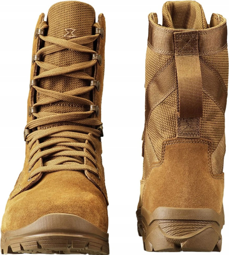 Buty taktyczne wykonane z materiału będącego połączeniem wytrzymałego zamszu o grubości 1,8 mm oraz mocnej, oddychającej tkaniny nylonowej.