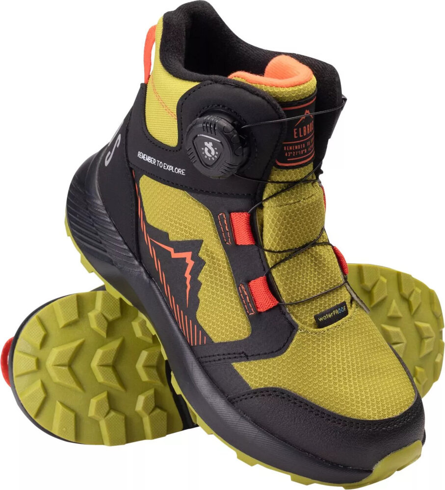 Juniorskie obuwie faloria mid wp jr marki elbrus to buty idealne na spacery po lesie lub górskie wycieczki, ponieważ cholewka i wzmocniona pięta stabilizują staw skokowy.
