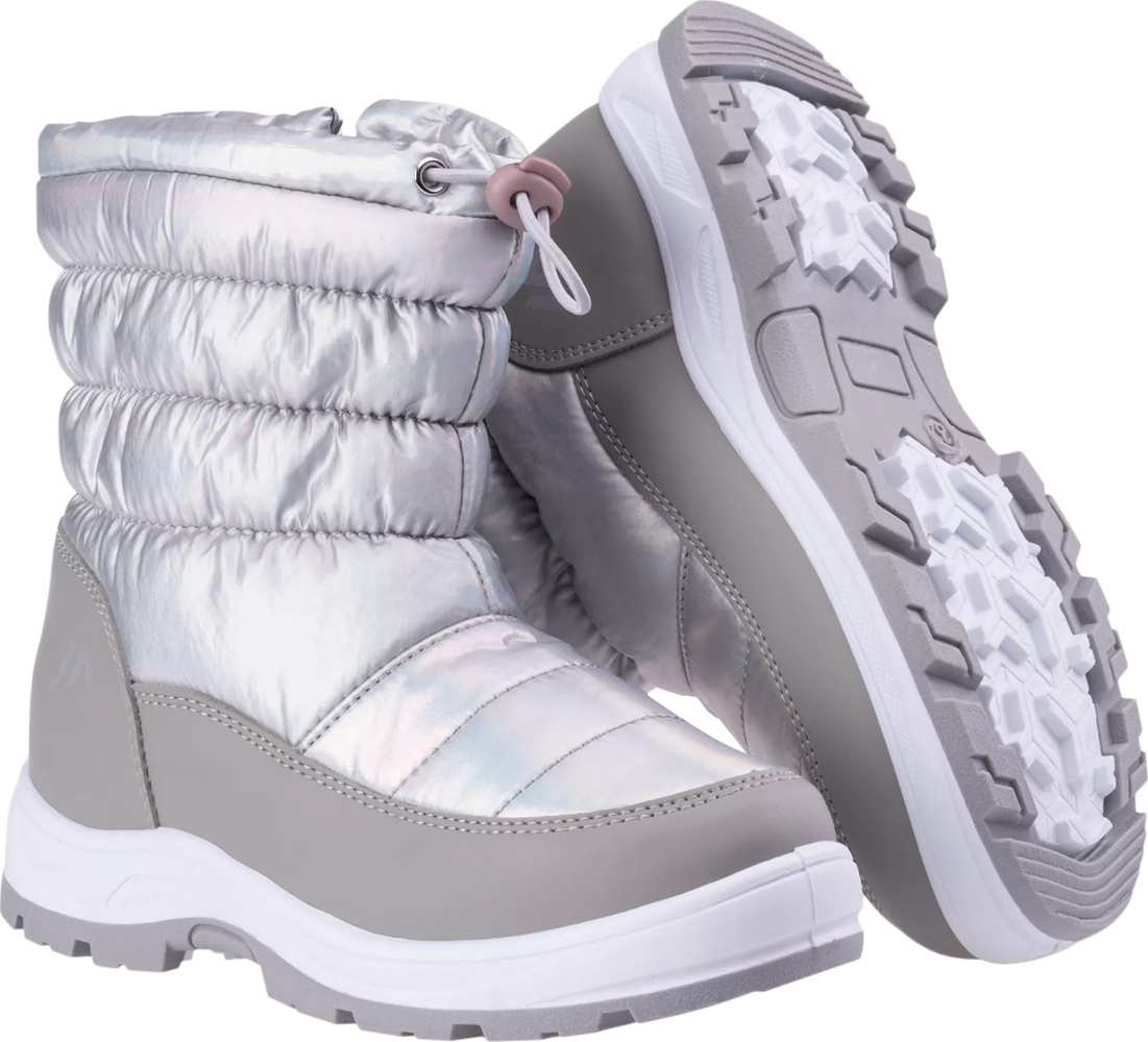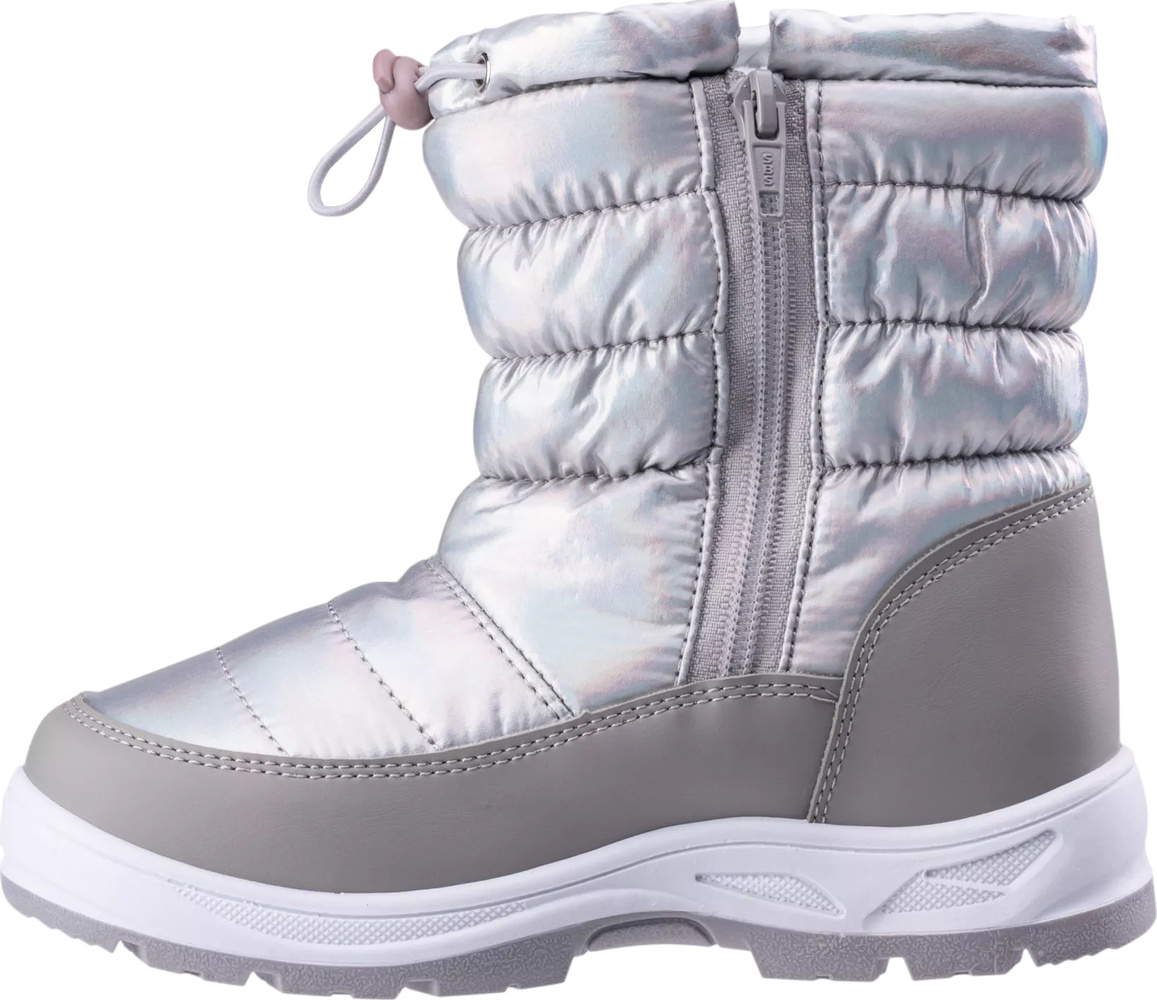 Juniorskie śniegowce meltes jrg posiadają wyższą cholewkę ze ściągaczem, który nie sprawi problemu najmłodszym miłośnikom zimowych zabaw.