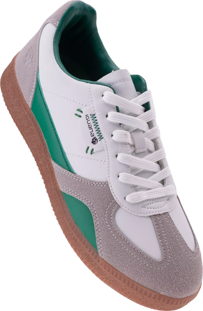 Męskie obuwie lecarde marki iguana posiadają niską cholewkę wykonaną z połączenia materiału syntetycznego oraz zamszu.
