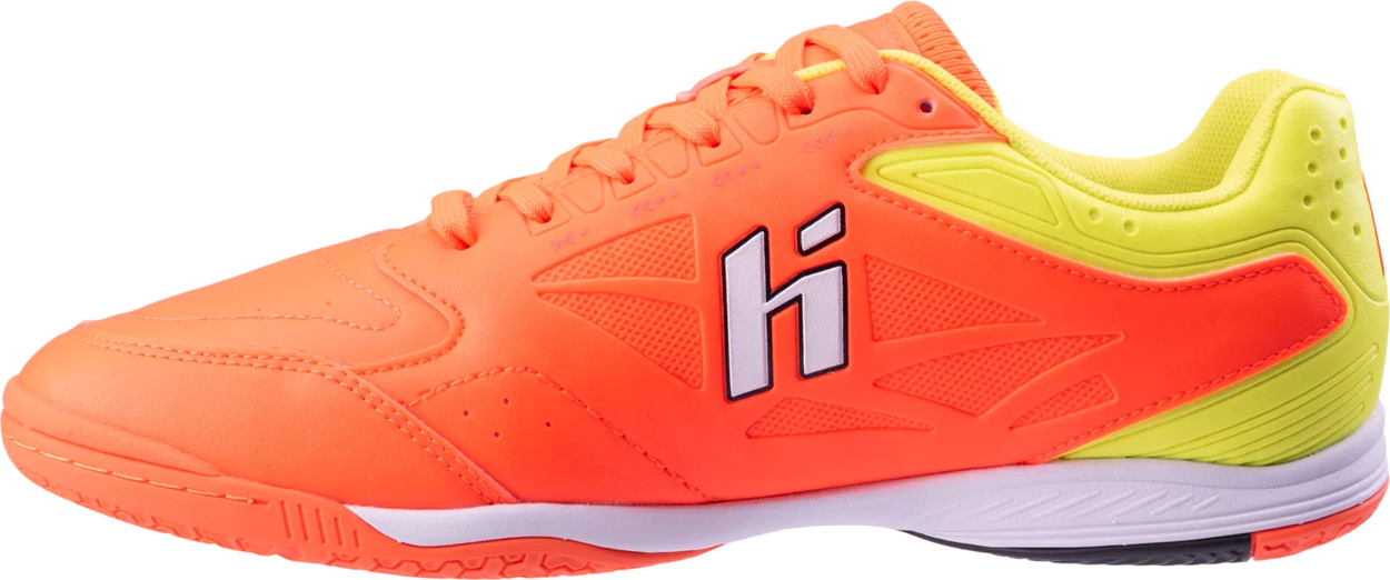 Męskie obuwie halowe pivotton ic marki huari posiadają niską cholewkę wykonaną z połączenia materiału syntetycznego z siateczką.