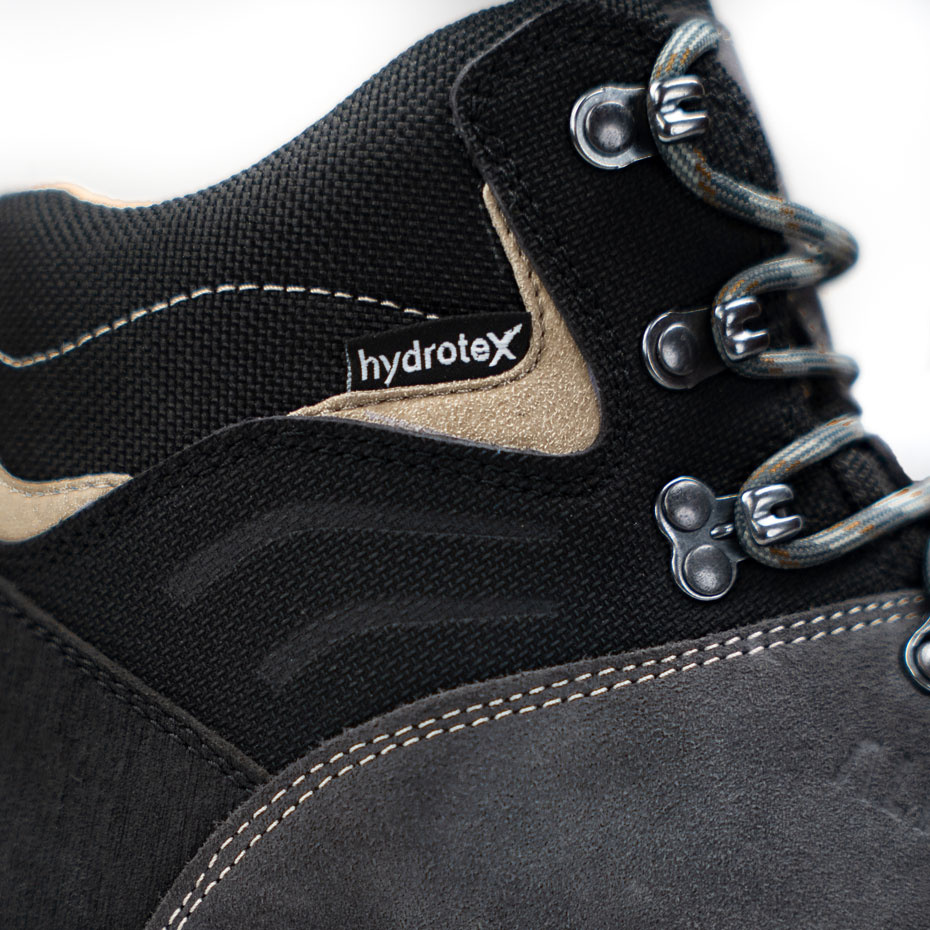 Zewnętrzna warstwa cholewki wykonana jest z pierwszej jakości skóry zamszowej oraz mikrofibry Całość została zaimpregnowana, co zapewnia pierwszą barierę przed wodą.