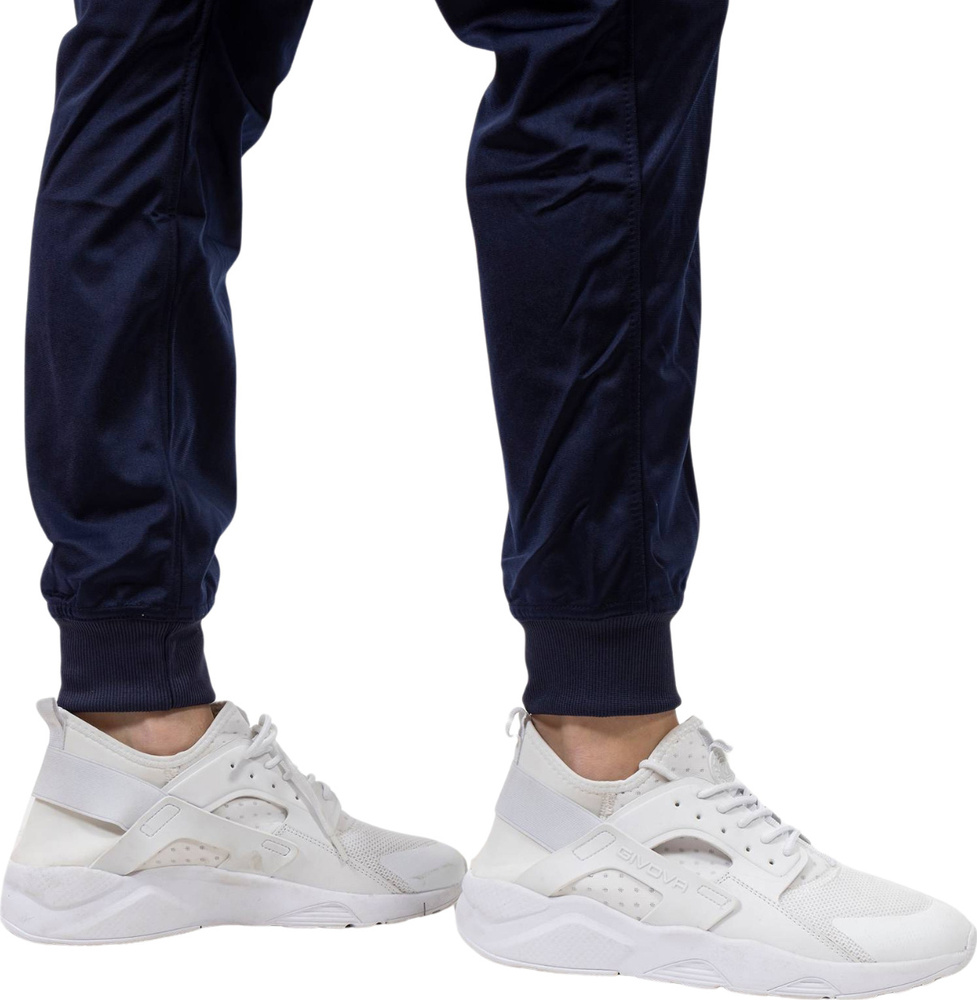 Długie spodnie z kieszeniami, których nogawki są wykończone prążkowanym, elastycznym ściągaczem zapewniają swobodę ruchów na boisku. Regulowana sznurkiem talia z gumką to gwarancja dopasowania, stabilizacji i wygody noszenia.