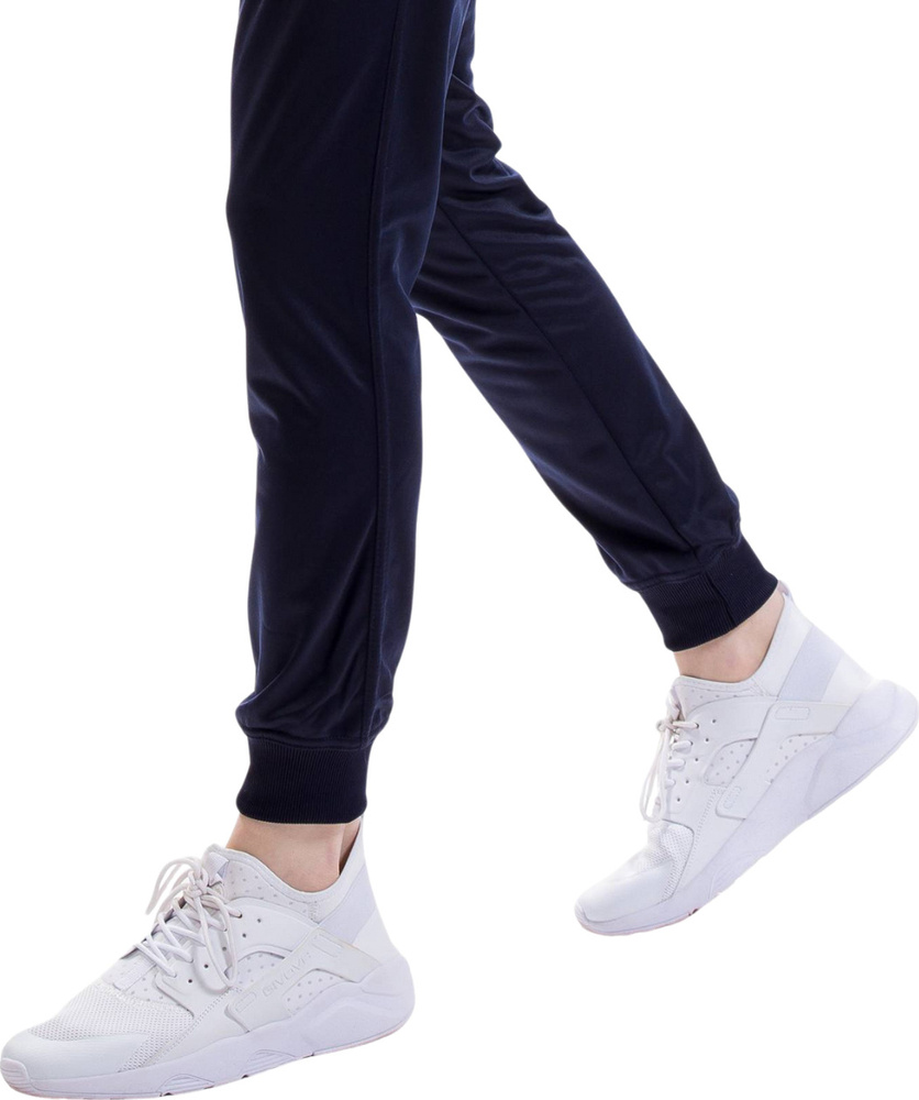 Długie spodnie z kieszeniami, których nogawki są wykończone prążkowanym, elastycznym ściągaczem zapewniają swobodę ruchów na boisku.