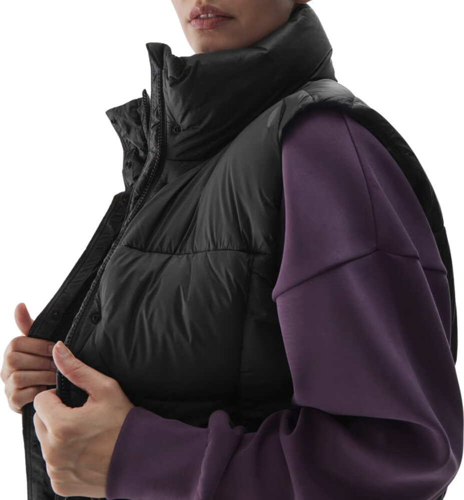 Fason z miękkim, syntetycznym wypełnieniem doskonale sprawdzi się jako wierzchnie okrycie w chłodniejsze dni, a kiedy potrzebujesz solidnej ochrony zimą, z powodzeniem możesz założyć bezrękawnik pod kurtkę, zyskując kolejną warstwę termoizolacyjną.