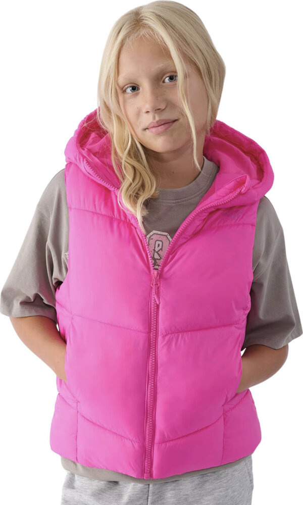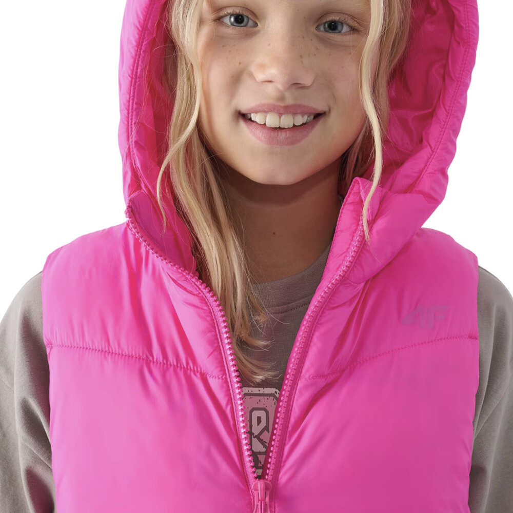 Kamizelka dla dziewczynki 4F to jeden z elementów garderoby pomagający zadbać o dodatkową ochronę przed chłodem podczas aktywnej zabawy na dworze czy w drodze do szkoły.
