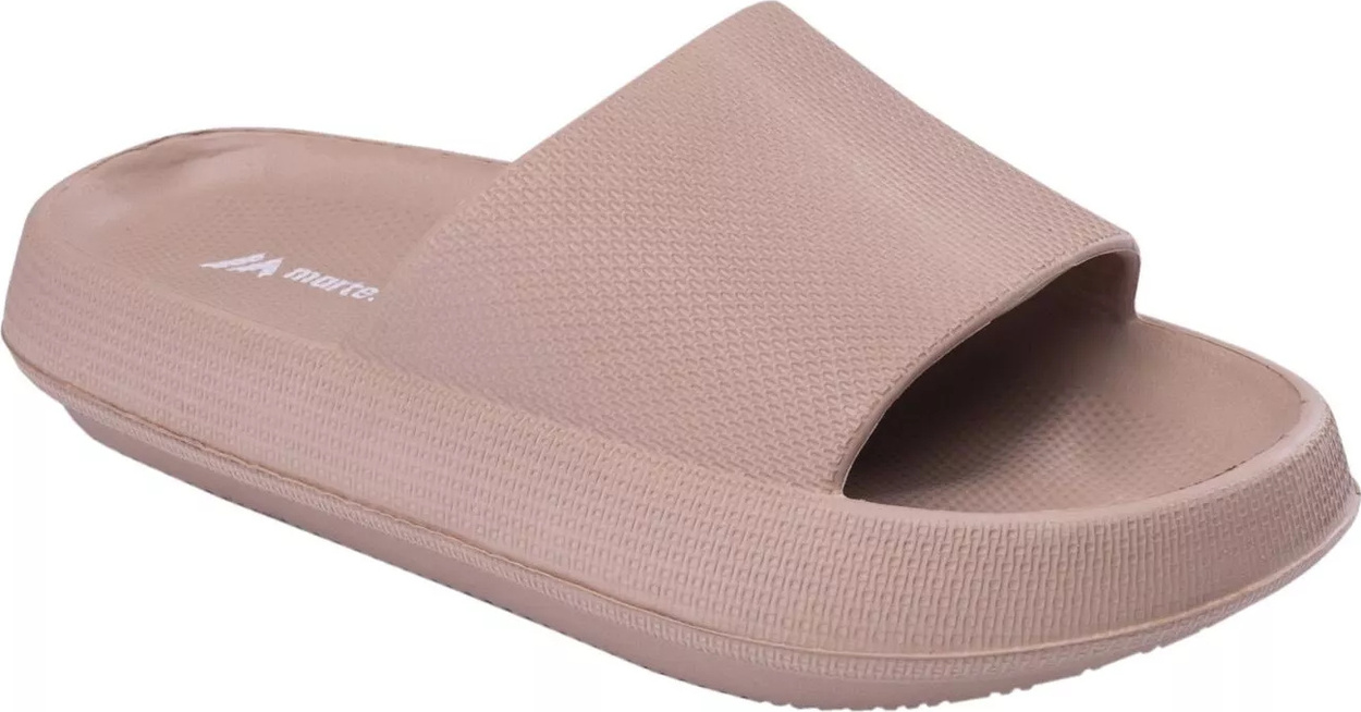 Damskie klapki lady mia marki martes essentials posiadają zaokrąglony nosek oraz odkryte palce.
