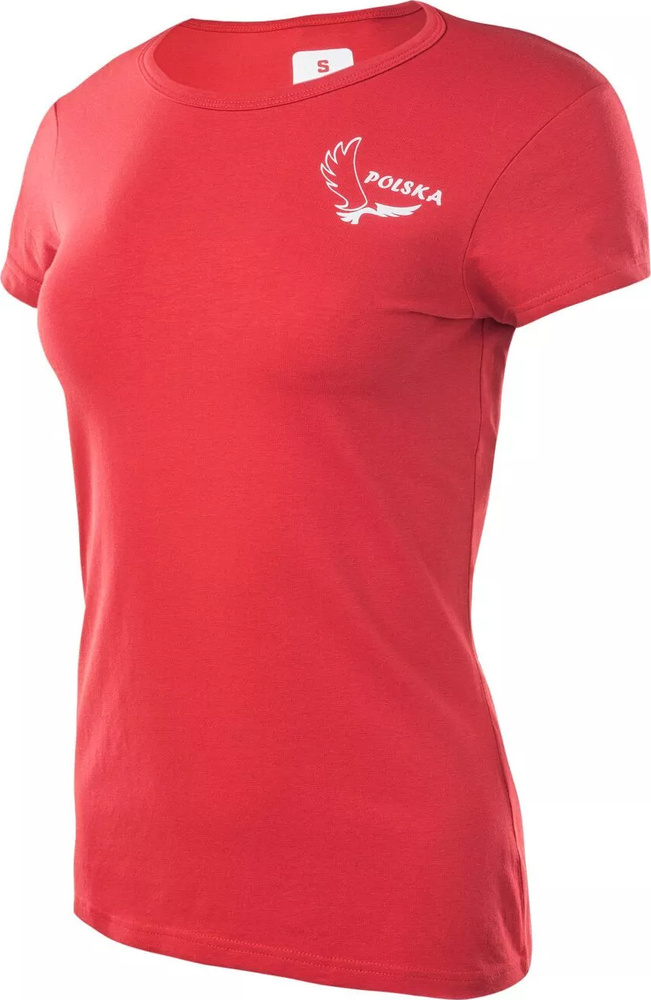 Damska koszulka poland fan lds w barwach narodowych, z ciekawą grafiką umieszczoną na klatce piersiowej.