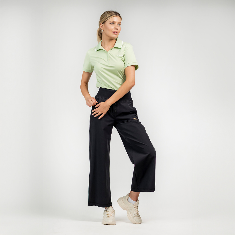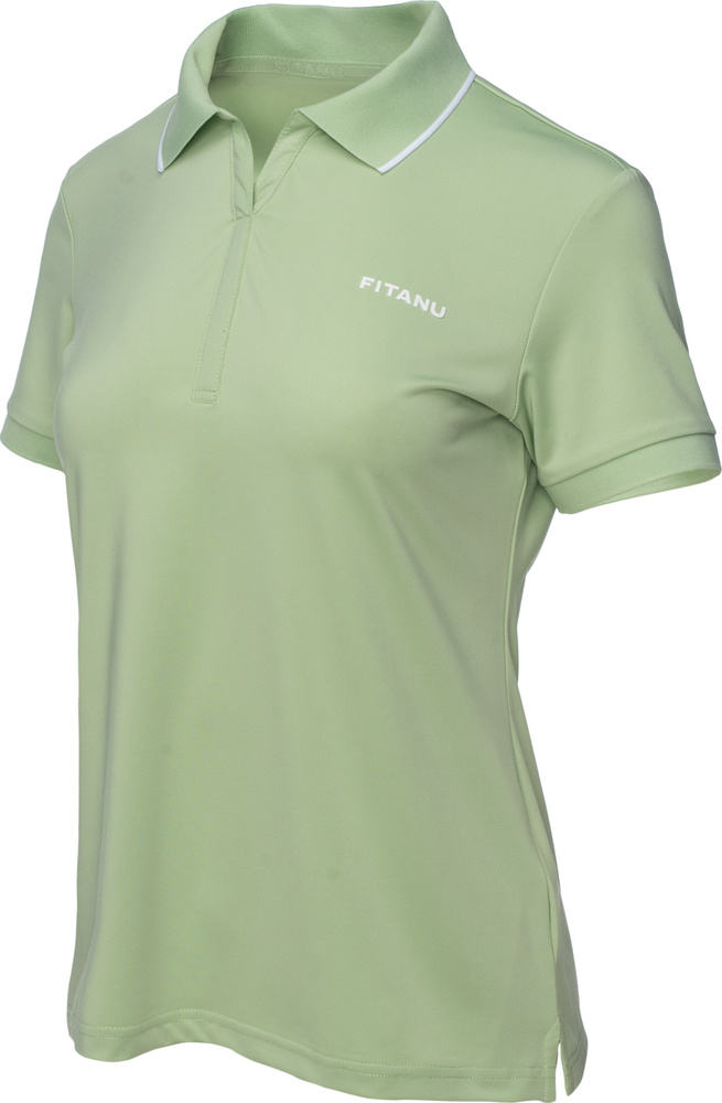 Damska koszulka polo frayana w marki fitanu została uszyta z wysokiej jakości materiałów syntetycznych pochodzących z recyclingu.