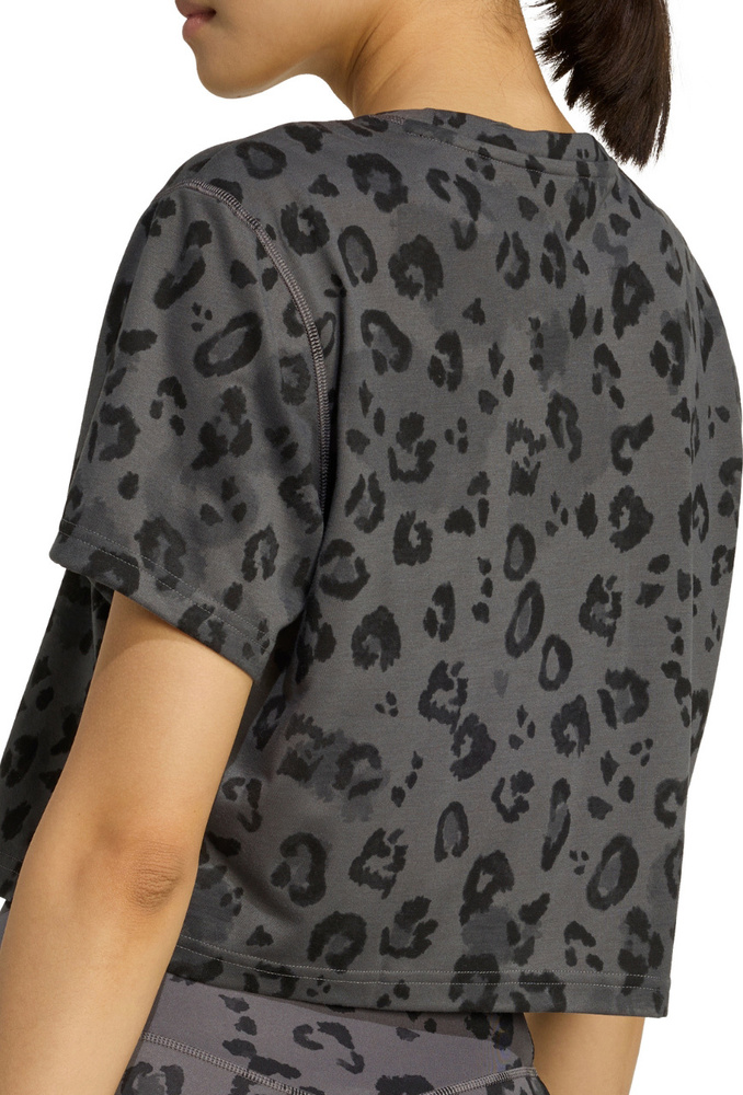 Skrócony, luźny krój z okrągłym dekoltem swobodnie układa się na sylwetce, co przekłada się na nieograniczony zakres ruchów.